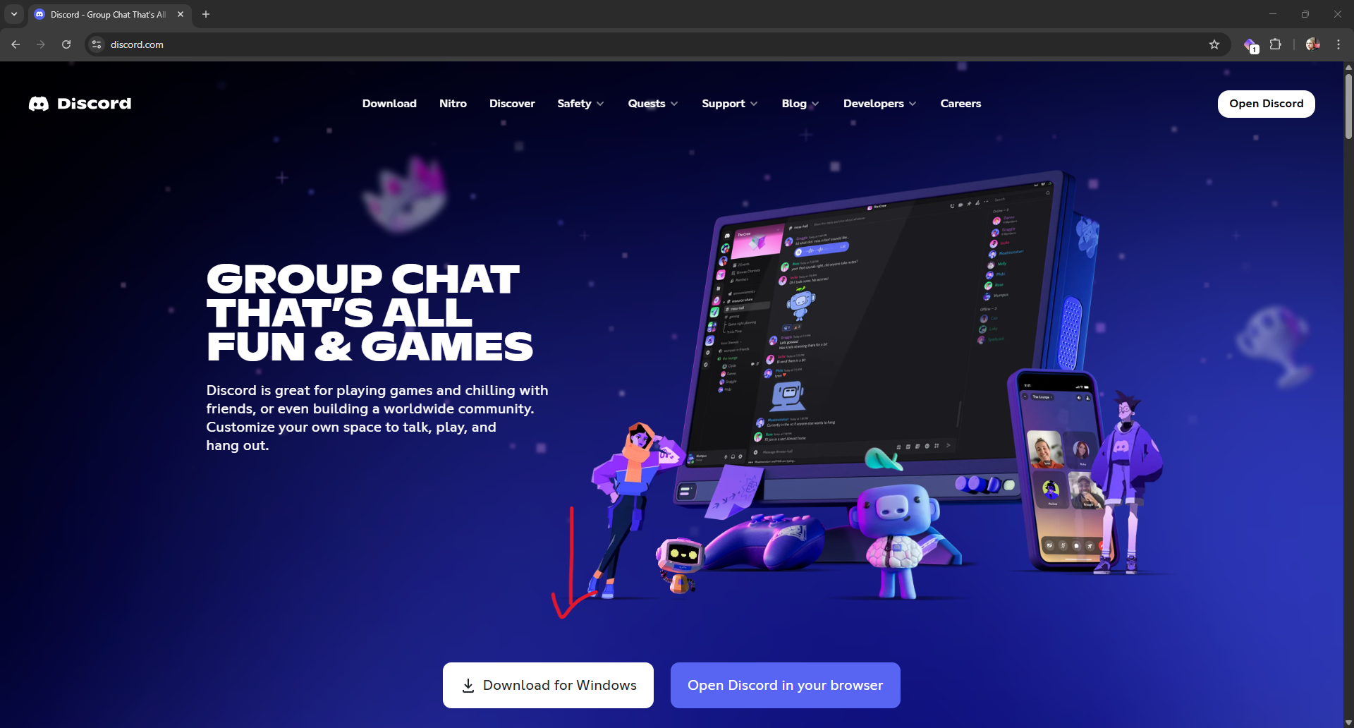 | Besuche die Website von Discord Kllicke unten auf Download für Windows |