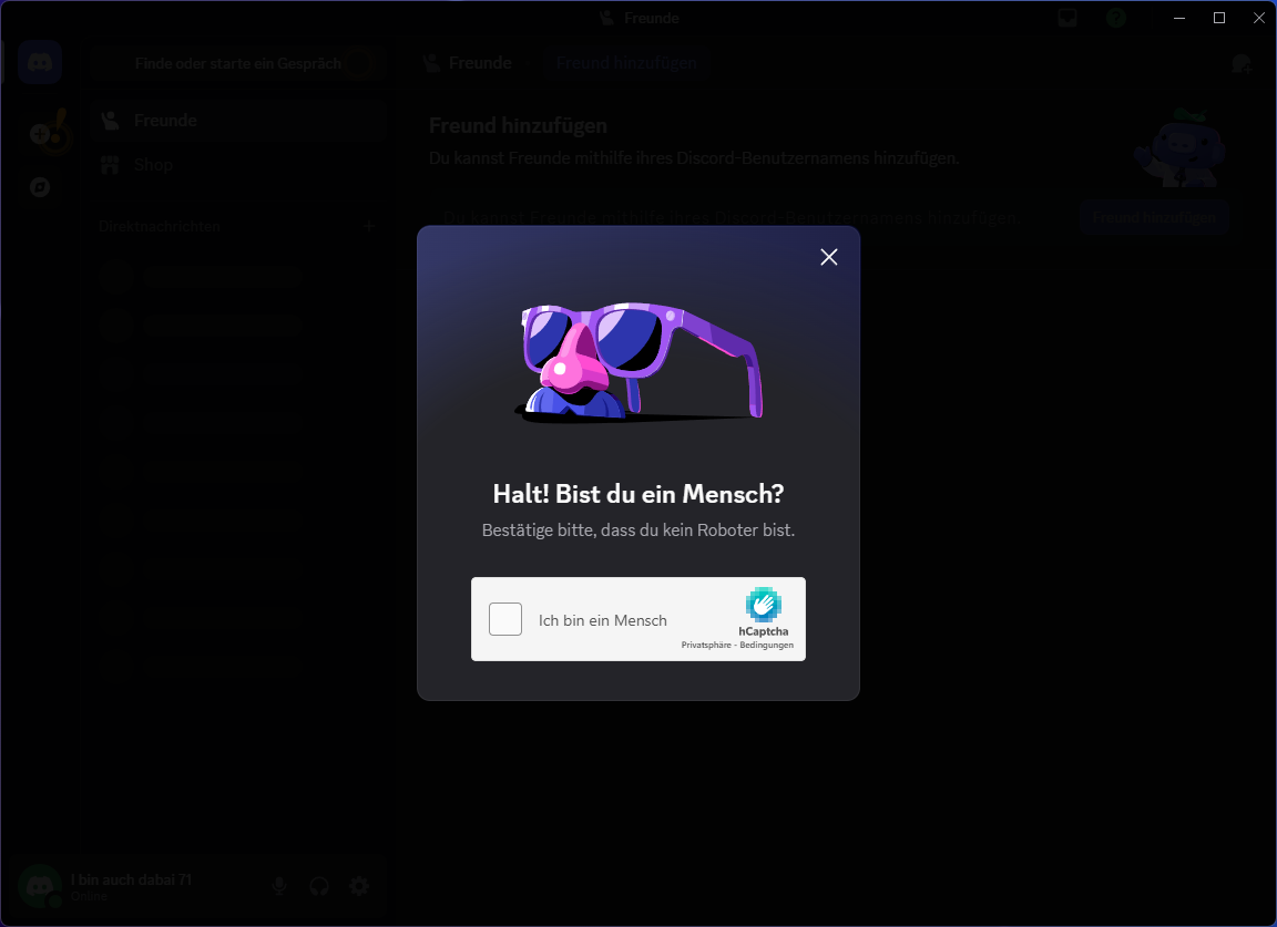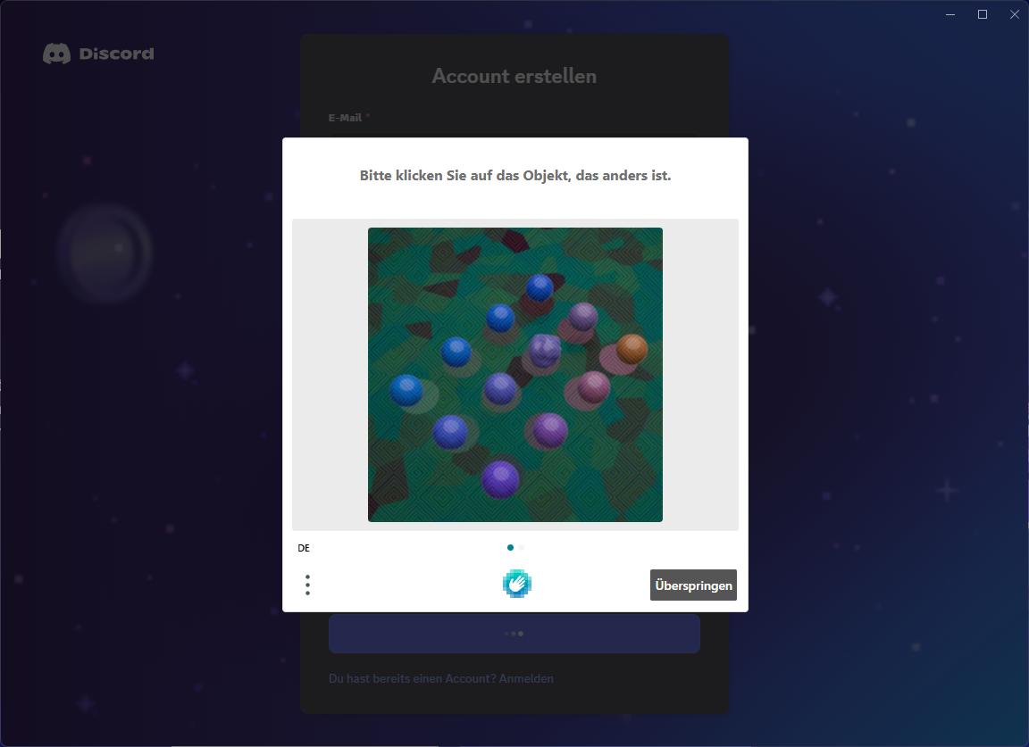 | Nachdem du auf Account erstellen geklickt hast wirst du aufgefordert zu bestätigen dass du kein Roboter bist BIST DU EIN ROBOTER? |