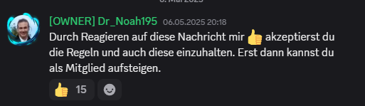 | Durch das korrekte Reagieren auf diese Nachricht, solltest du bald die Rolle Mitglied zugeteilt bekommen | ![]() |