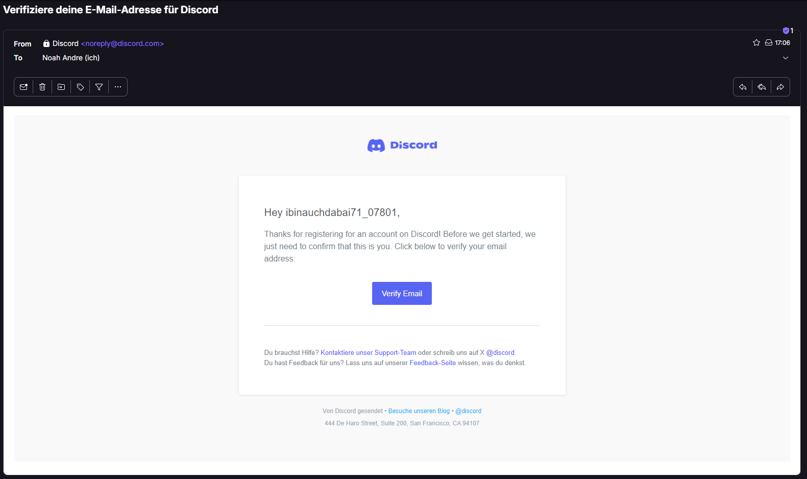 | Diene E-Mail sieht so aus. Drücke auf Verify Email | ![]() |
